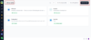 You can add a new bot skill, view the list of enabled and disabled custom bot skills, and mange the bots that are added to the UB.