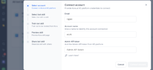 - Enter the API Admin token from the XO platform. For more information about how to get the API token from platform, see Using Kore.ai APIs.