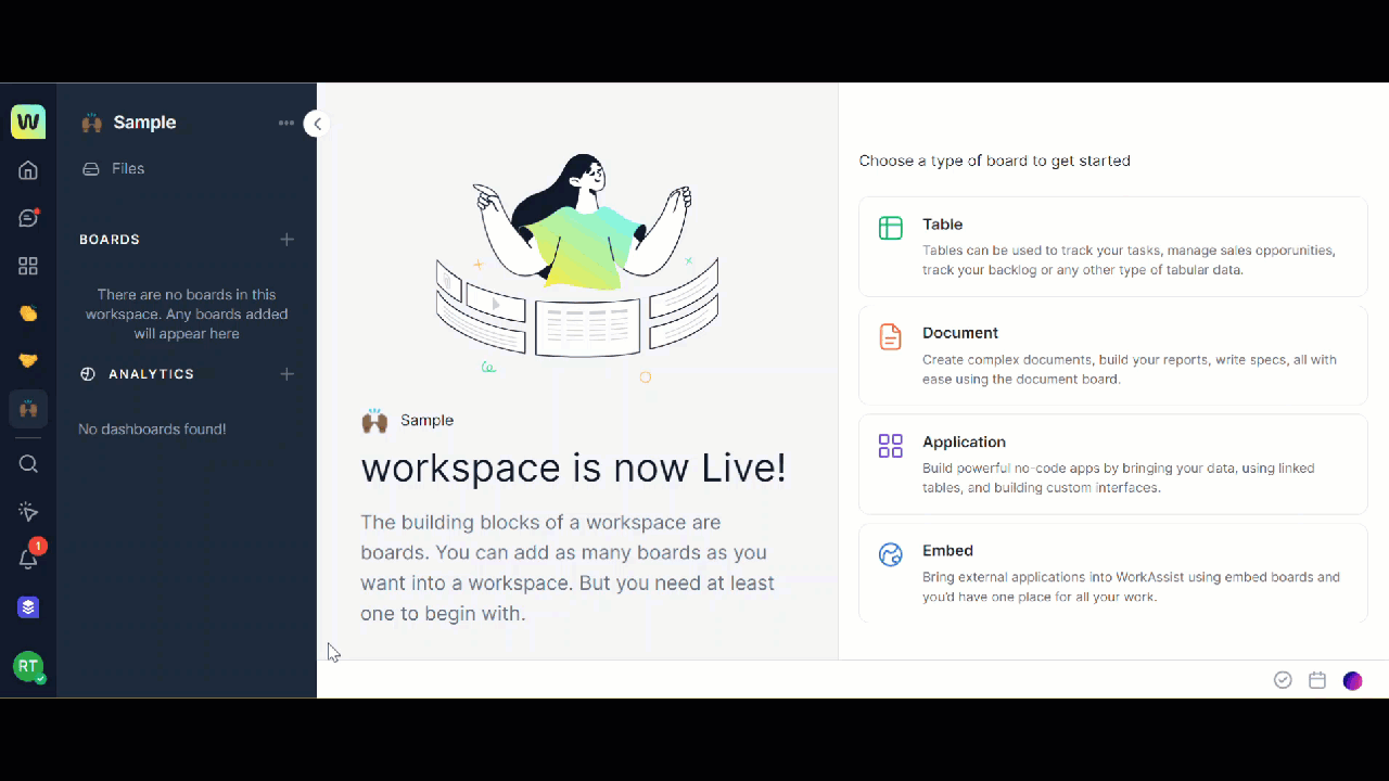 - Click the + icon corresponding to the Boards on the left navigation panel. A list of options is displayed.