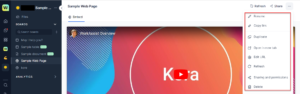 - Click the three dots icon on the header section of the embedded web page. A list of options is displayed.